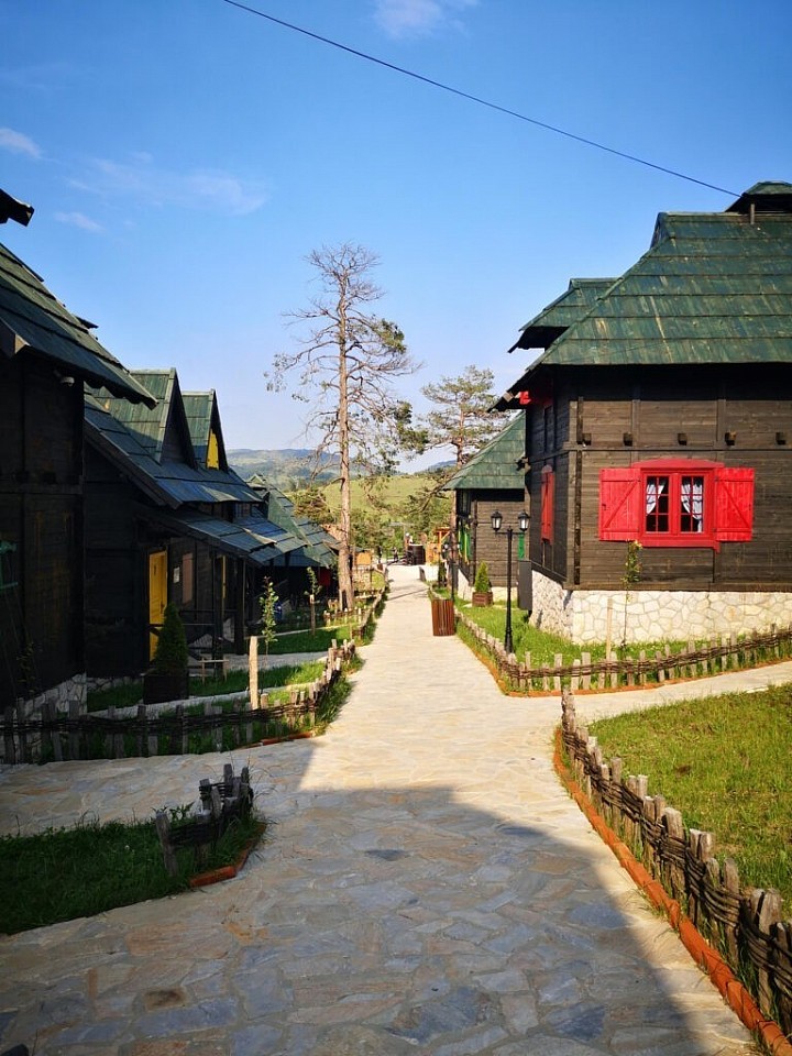 - златиборског засеока са црквом, где је представљена традиција овог краја из 19. века, са језером у коме се гаје пастрмке и са брвнарама, које су добиле име по некој познатој српској личности, чији лик се и налази на брвнари.